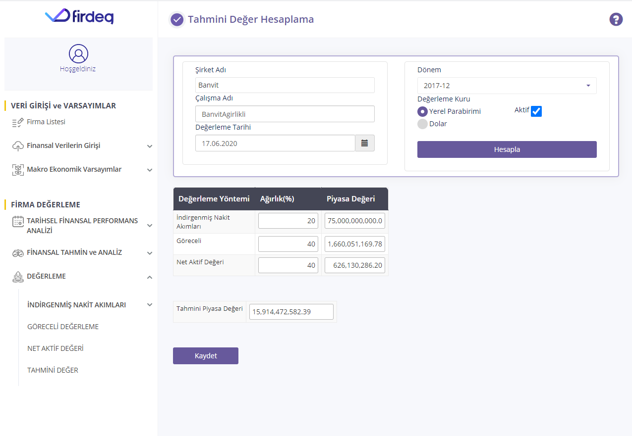 Değerleme çalışmanızı platformda sunulan sizin seçeceğiniz istediğiniz yöntem ya da yöntemlerle yapabilirsiniz.